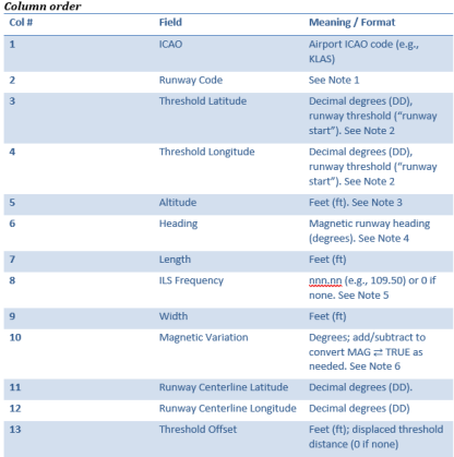 Runway data file: